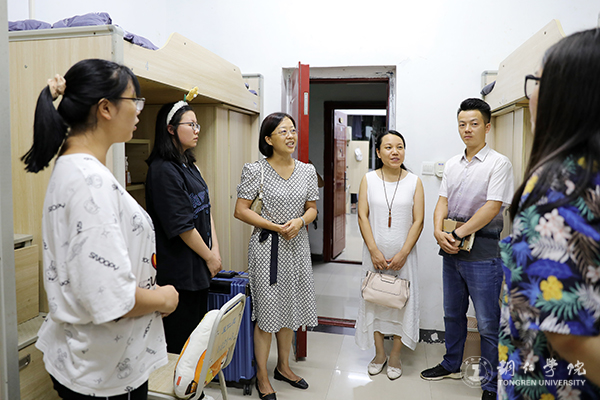 9月11日晚上8点,校长侯长林、副校长罗静等人来到尚雅苑、至仁苑等学生公寓楼,走进寝室里,看望慰问2021级新生,与他们交流谈心,了解他们进校后的学习生活情况。