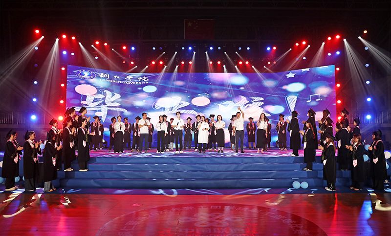 最后,晚会在温馨不舍中落幕,舞台灯光渐熄,青春故事不散场。领导、师生、演职人员与毕业生相拥合影,定格笑与泪、不舍与期许,成校园岁月珍贵纪念。