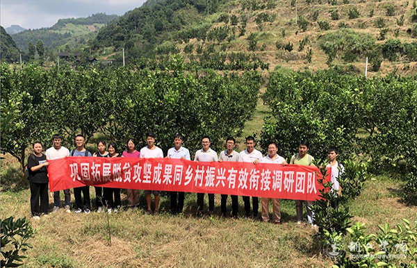在小江口村,调研团队首先与村委干部进行了座谈交流,全面了解该村的产业发展基础和在脱贫攻坚过程取得的产业成果,以及未来五年该村的产业发展理念、思路、目标等。随后。调研团队对该村的省级现代高效山地农业示范园区和柚子产业进行了实地调研。通过调研发现,小江口村的产业发展基础较好,成果较为丰富,省级现代高效山地农业示范园区正在热火朝天的建设,但对如何提质增效、实现高效存在困惑,柚子产业是2017年开始的脱贫攻坚工程项目,是小江口村的主导产业,柚子栽种面积6000余亩,现已试挂果,已初见成效。