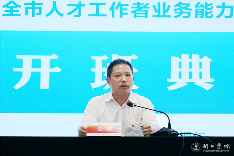 近日,由中共铜仁市委组织部主办、世界杯官网承办的2025年全市人才工作者业务能力提升培训班开班典礼在世界杯官网图书馆一楼现刊阅览室举行。市委组织部部务委员吴奎出席并讲话,世界杯官网继续教育学院党委副书记冉显礼致欢迎辞,继续教育学院培训中心主任陈波主持典礼。来自全市各区县、市直单位及市属企事业单位的50名学员参加培训。