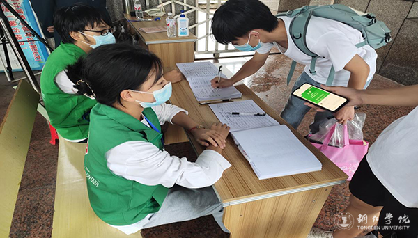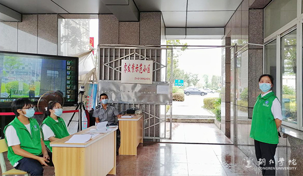 在学校北门和南门执勤点参与信息登记疫情服务的志愿者们,每天早上8点至晚上20点坚守在岗位上,对学校防疫工作进行仔细摸排,严格把控,积极做好教职工、留校学生及外来人员进出校园的身份核验、体温检测等疫情防控工作,严格执行查看健康码、行程码和新冠病毒疫苗接种后金边标识码的“三码联查”制度,对符合要求者登记信息后放行,无关人员车辆不得进入校园,坚决杜绝防疫盲区。在疫情防控工作中,志愿者们发现疫苗未打和未全程接种的师生,时刻提醒其尽早完成新冠疫苗接种,及早筑牢校园免疫屏障。志愿者们与安保人员履行自身职责,坚决把好校门关,坚决阻断疫情向校园蔓延,以确保校园安全和师生员工健康。