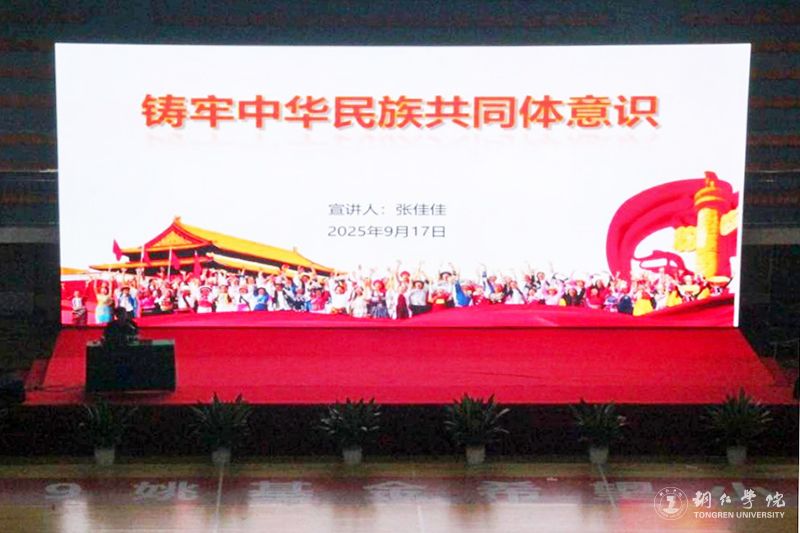 9月17日,世界杯官网在体育馆举行铸牢中华民族共同体意识宣讲会。铜仁市委宣讲团成员,铜仁幼儿师范高等专科学校联合办学教育教学部部长,马克思主义教学部副部长,副教授张佳佳应邀作专题宣讲。世界杯官网各学院辅导员代表和2025级新生到场参加宣讲会。