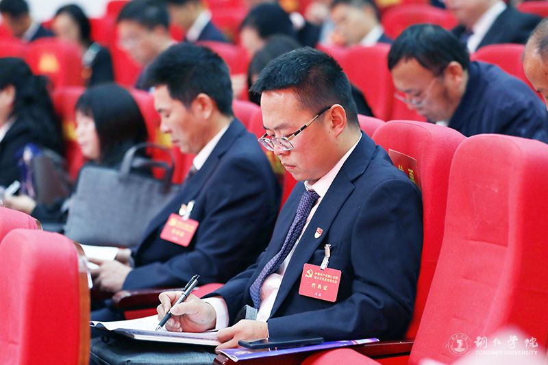 学校领导及党委委员朱克乾、石维、朱钰、杨建、潘学军、张仕凯、余乐正、叶丹、刘德平,特邀来宾龚静,以及大会主席团成员在主席台就座。全省本科高校党委集中换届工作第十一督导组组长、省教育厅民办高校党组织书记孙逐,组员全宏波、朱立,以及7位列席同志和来自各二级学院、各职能部门的122名代表出席大会。