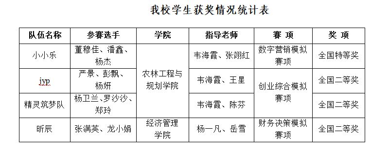 近日,第十二届“学创杯”全国大学生创业综合模拟演训活动高教组总决赛在成都理工大学圆满落幕。来自全国221所高校的代表队齐聚一堂、同台竞技。世界杯官网农林工程与规划学院“小小乐”团队凭借扎实的基础和出色的表现,勇夺数字营销赛项全国总决赛团体特等奖,创下世界杯官网在该项赛事的最好成绩。其他3支队伍分别获创业综合模拟赛项和财务决策赛项团体二等奖,学校获大赛组委会颁发的优秀组织奖。