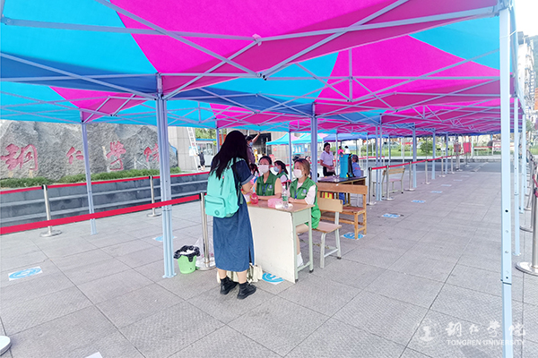 “同学,你好,欢迎回家!”“同学,你好,请出示一下健康码和行程码。”校园南门,学生有序排队进入核验通道,依次通过“身份核验、健康码行程码查验、体温测量、行李消杀”等环节。工作人员、志愿者全天候奋战在一线,严格把控,细致引导,热情服务,切实守好学生进校的每一道防线;学生严格按照返校流程自觉间隔一米有序入校,积极配合工作人员查验,现场井然有序。