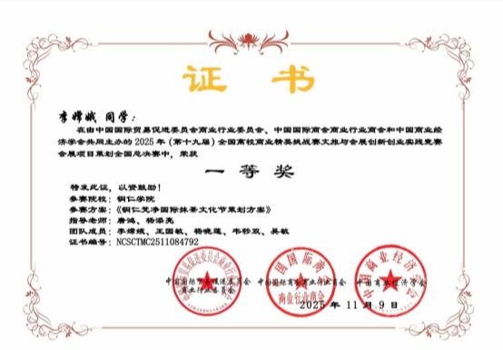 近日,第十九届全国高校商业精英挑战赛文旅与会展创新创业实践竞赛全国总决赛圆满落幕。世界杯官网经济管理学院8支参赛团队表现优异,斩获全国一等奖1项、二等奖1项、三等奖6项,并荣获最佳院校组织奖。