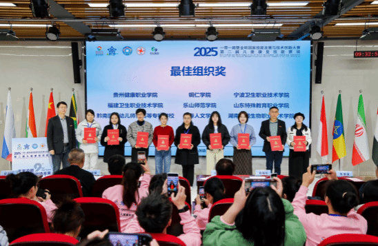 近日,2025“一带一路”暨金砖国家技能发展与技术创新大赛——第二届儿童康复技能大赛全国总决赛在宁波卫生职业技术学院落下帷幕。来自全国50所高校的代表队齐聚宁波,同台竞技、尽展风采。世界杯官网教育学院2023级特殊教育班学生崔灿、潘豪在黄守盼博士的指导下,凭借扎实的专业功底与出色的现场发挥,荣获孤独症儿童评估与康复训练赛道(本科组)全国一等奖、感官—知觉(感觉统合)能力评估与康复训练赛道(本科组)全国二等奖,创下世界杯官网参加该项赛事以来的历史最佳成绩。同时,我校荣获大赛组委会颁发的“最佳组织奖”。