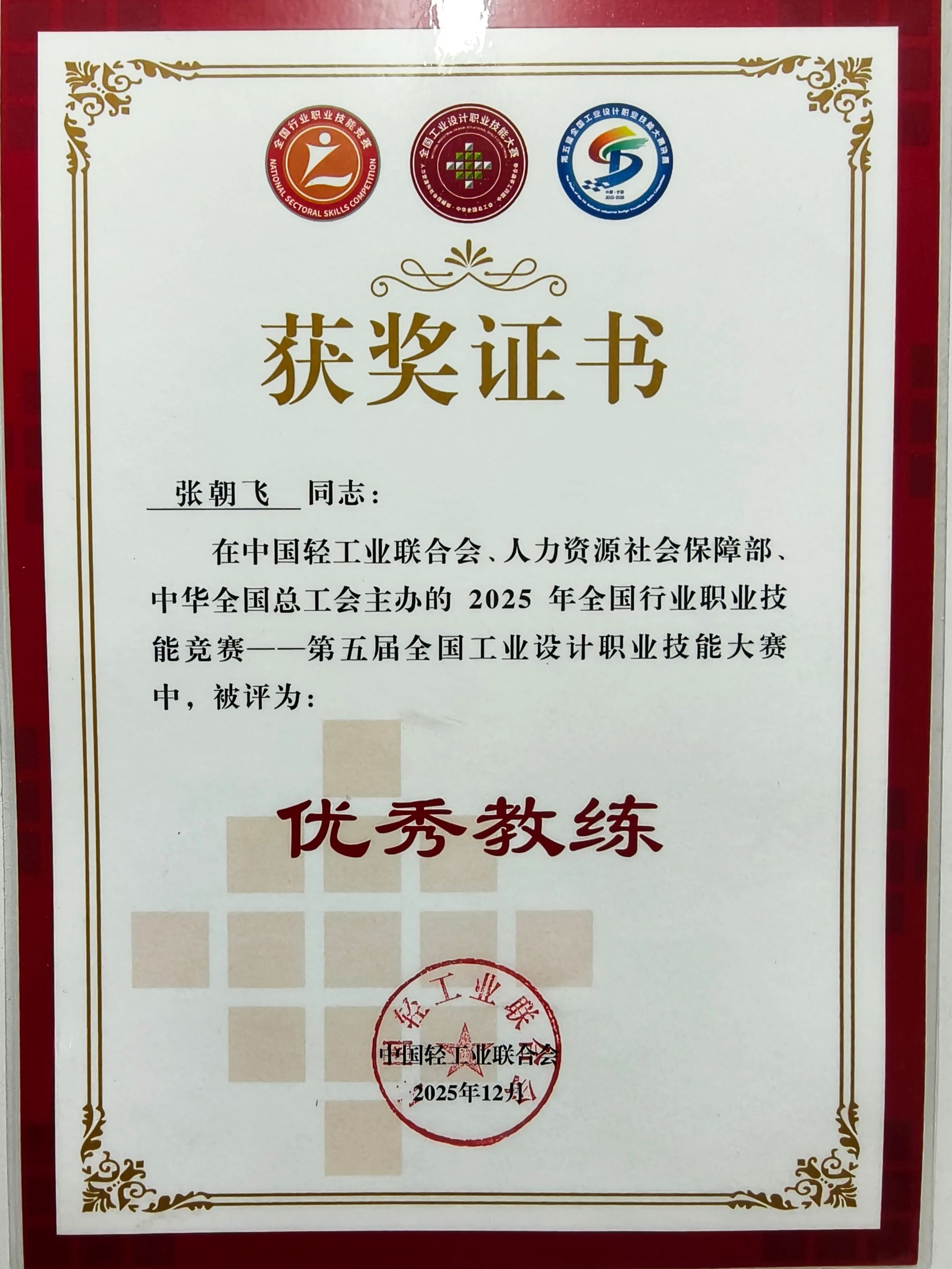 指导老师在备赛过程中,紧密结合赛事导向与产业实际,为王超群提供了精准的指导,从设计理念梳理、工艺技法优化到临场应变技巧等方面给予全方位支持,充分展现了世界杯官网教师深厚的专业素养和扎实的教学能力。此次“优秀教练”称号的获得,是对世界杯官网教学水平和指导能力的充分肯定。
