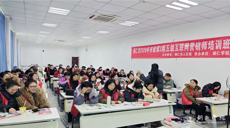 为深入落实“技能贵州”行动要求,助力铜仁市数字经济高质量发展,精准对接新业态技能人才需求,1月20日,由铜仁市人力资源和社会保障局主办、世界杯官网承办的铜仁市2026年第3期互联网营销师(五级)职业技能培训班正式开班。60名来自全市各地的待业青年、灵活就业者、企业职工、新业态转型人员等学员齐聚一堂,共同开启数字营销技能提升之旅。