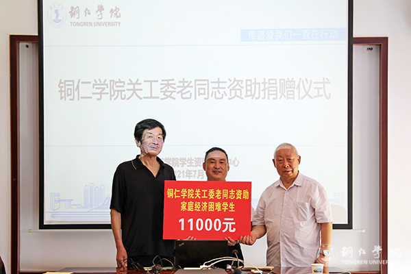 首先,谭光涛作讲话。他指出关工委以关心关爱青年一代为己任,始终关注于大学生的健康成长。自去年疫情肆虐,对一些困难家庭的经济收入造成了严重影响,关工委老同志们感同身受、心急如焚,虽属工薪阶层,愿奉献微薄之力,6位副主任共捐11000元,略表心意。祝愿同学们战胜困难、树立信心、珍惜韶华、不负青春、刻苦努力、学业有成!