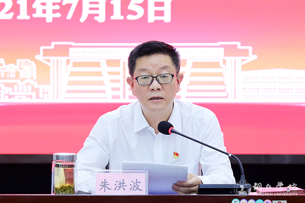 朱洪波说,习近平总书记“七一”重要讲话,立足中国共产党成立100周年的重大时刻和“两个一百年”历史交汇的关键节点,回望光辉历史、展望光明未来,是一篇马克思主义纲领性文献,是新时代中国共产党人不忘初心、牢记使命的政治宣言,是我们党团结带领人民以史为鉴、开创未来的行动指南。我们要准确掌握习近平总书记“七一”重要讲话精神的核心内涵,切实把思想和行动统一到讲话精神和要求上来,不断汲取养分,感悟思想伟力,以更大的热情投入到建设中国特色社会主义的伟大实践中,投入到推进学校教育事业高质量发展的具体实践中。我们要结合实际深入学习贯彻习近平总书记“七一”重要讲话精神,把学习成果转化为奋进新征程、建功新时代的实际行动。我们必须坚持党对学校工作的全面领导,坚持思想政治工作是学校各项工作的生命线,坚持不断加强党的建设,统一思想、强化共识,坚守初心使命,积极担当作为,不断推进学校教育事业高质量发展,努力培养担当民族复兴大任的时代新人。