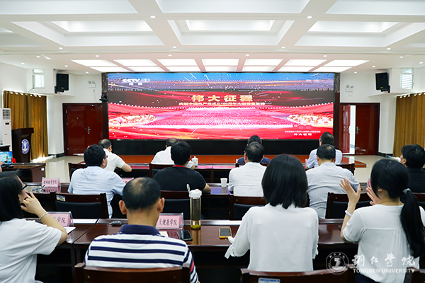 当天上午,大家集中观看了庆祝中国共产党成立100周年大型情景史诗《伟大征程》。这部作品用艺术化的方式再现了中国共产党的百年历史,让大家从中深切感受了中国共产党百年征程的波澜壮阔和伟大辉煌,更加深刻认识了“中国共产党为什么‘能’?马克思主义为什么‘行’?中国特色社会主义为什么‘好’?”在这部作品的鼓舞下,进一步增强了大家坚定理想信念、增强历史自觉、弘扬优良传统、加强党性锤炼的信心与决心。观看最后,大家还一同唱响了《没有共产党就没有新中国》。