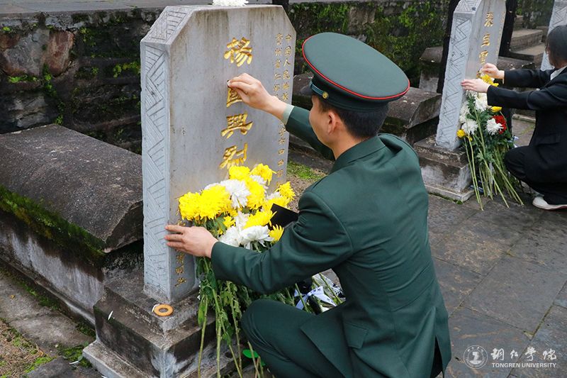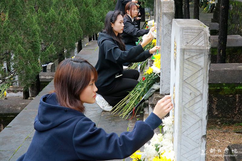 仪式结束后,师生手持鲜花,缓步瞻仰烈士墓区,逐一鞠躬献花,并细心擦拭墓碑、清扫落叶,以朴素诚挚的行动表达对先烈的无限追思与崇高敬意。