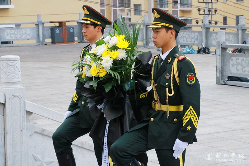 烈士纪念碑前,师生列队肃立,集体默哀、鞠躬致敬,深切悼念为民族独立、人民解放和国家富强英勇献身的革命先烈。