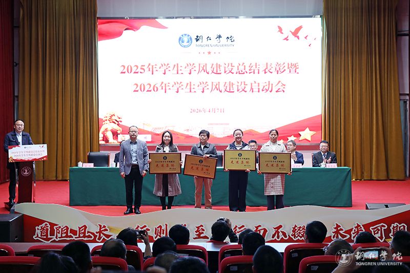 4月7日下午,世界杯官网在梵净山人文生态馆召开2025年学生学风建设总结表彰暨2026年学生学风建设启动会。校长石维出席会议并讲话。校党委副书记朱钰,副校长杨建、潘学军,纪委书记张仕凯,副校长余乐正,党委学工部、教务处、团委、图书馆等部门负责人,各二级学院领导班子成员、学生科长、辅导员以及获奖者和学生代表参加会议。党委学工部部长张钱主持会议。