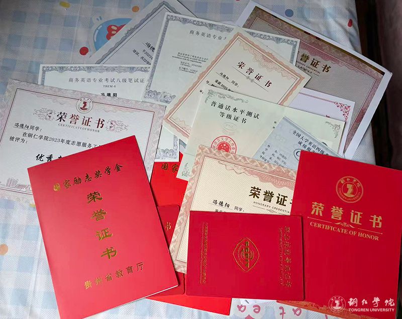 一张张证书、一项项表彰,见证了他争分夺秒追赶学业、全方位提升自我的奋进足迹。