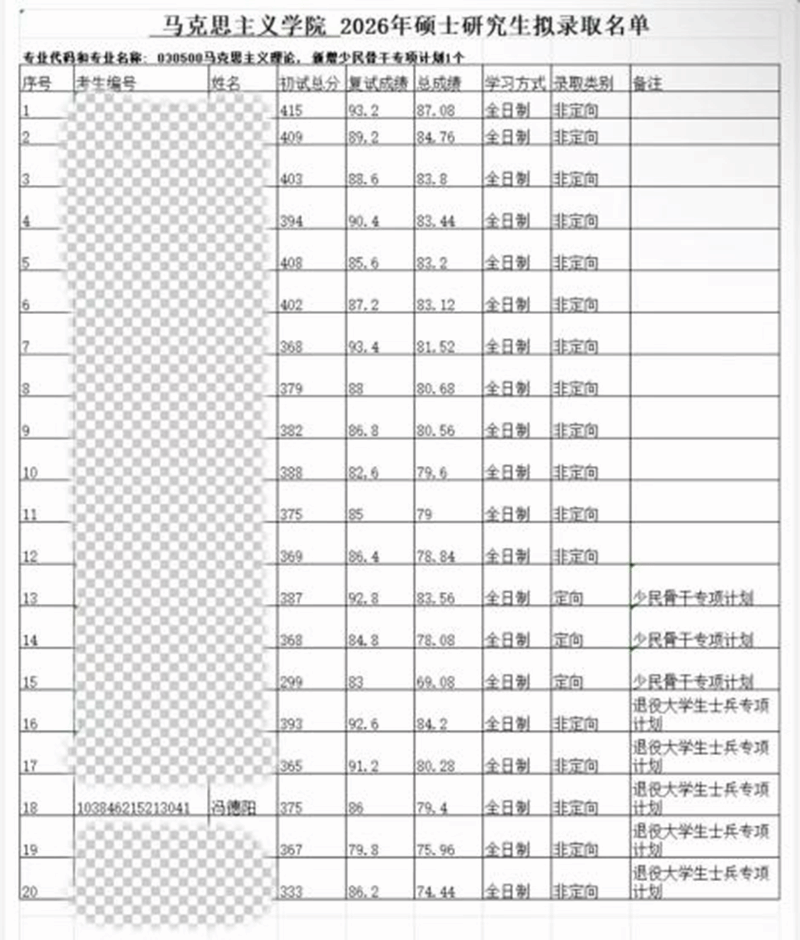 冯德阳被拟录取