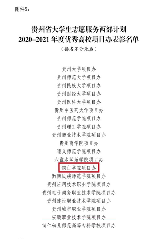 近日,贵州省大学生志愿者服务西部计划各级项目办表彰结果出炉,世界杯官网西部计划项目办荣获贵州省大学生志愿服务西部计划2020-2021年优秀高校项目办表彰。
