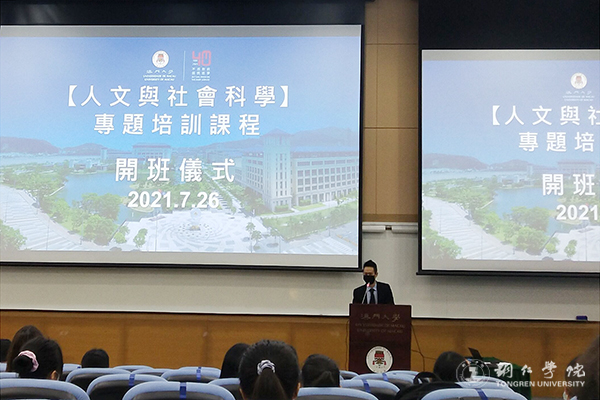 7月26日上午,人文与社会科学专题培训开班仪式在澳门大学举行。带队老师张潇叶及第一批全体同学参与了开班仪式。仪式由澳门大学持续进修中心主任、校董会成员刘丁己教授主持。