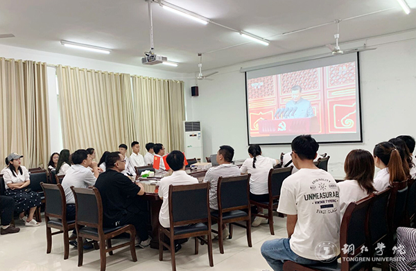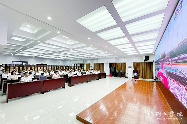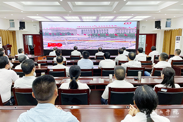世界杯官网组织师生收看了庆祝中国共产党成立100周年大会直播。学校党委班子成员,各党群、行政、教辅部门副处级及以上领导干部在行政楼8501会议室集中收看电视直播;各二级学院党委(党总支)组织无课的师生集中收看;校团委组织200余名学生干部在博思楼206多媒体教室集中收看;其他广大师生通过电脑、手机等多种形式观看了直播盛况,共庆中国共产党百年华诞。