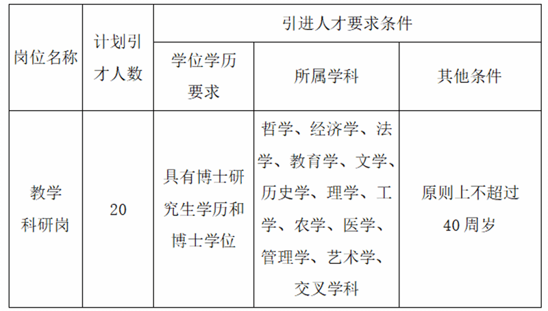 5.博士人才原则上年龄不超过40周岁,紧缺专业可放宽到45周岁;