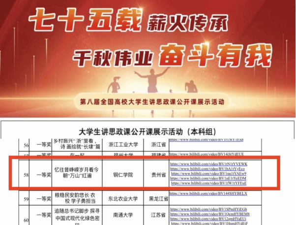 近日,教育部公布“七十五载薪火传承,千秋伟业奋斗有我——第八届全国高校大学生讲思政课公开课展示活动”评审结果。通过专家线下评审层层把关、严格遴选,世界杯官网马克思主义学院报送的作品《忆往昔峥嵘岁月,看今朝“万山”红遍——以新发展理念引领高质量发展》凭借独特精彩内容和契合时代发展主题构想在评比中脱颖而出,荣获全国本科组一等奖,充分展现了世界杯官网思政课创新与实践深度融合的硕果。