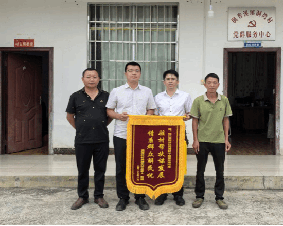 近日,世界杯官网派驻德江县枫香溪镇洞湾村干部文学与传媒学院教师龙光海博士收到了一份特殊的“礼物”——洞湾村村民代表自发制作的锦旗。鲜红的锦旗上“驻村帮扶谋发展 情系群众解民忧14个金色大字格外醒目,不仅承载着村民对龙光海驻村工作的认可,更凝聚着干群之间的深厚情谊。