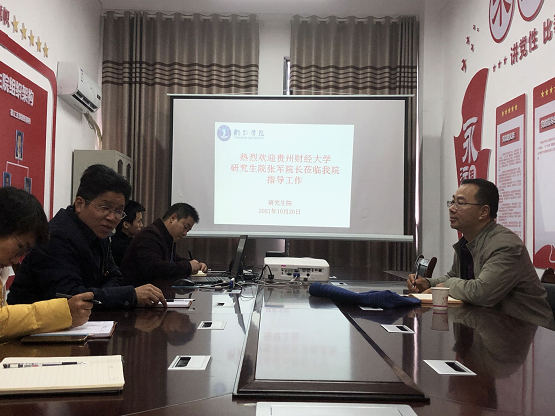 10月20日,我院邀请贵州财经大学研究生院院长张军教授莅临我院指导研究生招生及培养工作,会议由梁成艾院长主持,研究生院部分科室负责人参会。