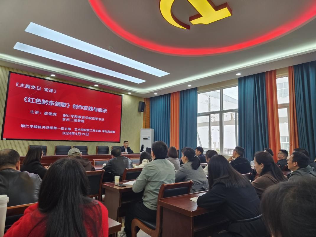 最后,梁正海作总结讲话。他强调《红色黔东组歌》具有浓厚的革命情感和鲜明的地域特色,这部作品以党史为脉络,以音乐为载体,既回顾了黔东的红色历史,也弘扬了黔东的红色文化,激励着我们砥砺前行。他要求,全体党员一定要深入学习贯彻落实习近平文化思想,不断增强文化自信,进一步发扬长征精神和红军革命精神,拼搏奋进,立足岗位,不断创新,为学校的高质量发展贡献自己的力量。