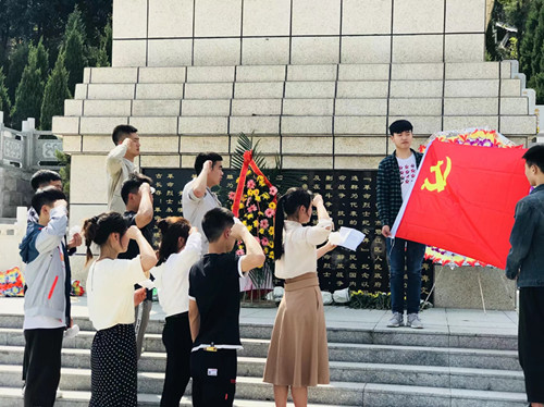 整个活动分成三部分以扫墓献花的方式寄托哀思。首先,全体党员在肖雅丽同志的带领下重温了入党誓词。通过重温入党誓词,全体党员深深感受到党员的责任、使命、荣耀,同时也提醒着我们要在今后的学习和生活中,不忘承诺,牢记职责使命,时刻以党员的标准严格要求自己,时刻以党员的先进性鞭策激励自己,发扬优良传统,坚定理想信念,奋发进取、用心学习,以更加高昂的精神、更加优异的业绩饯行对党的庄严承诺。