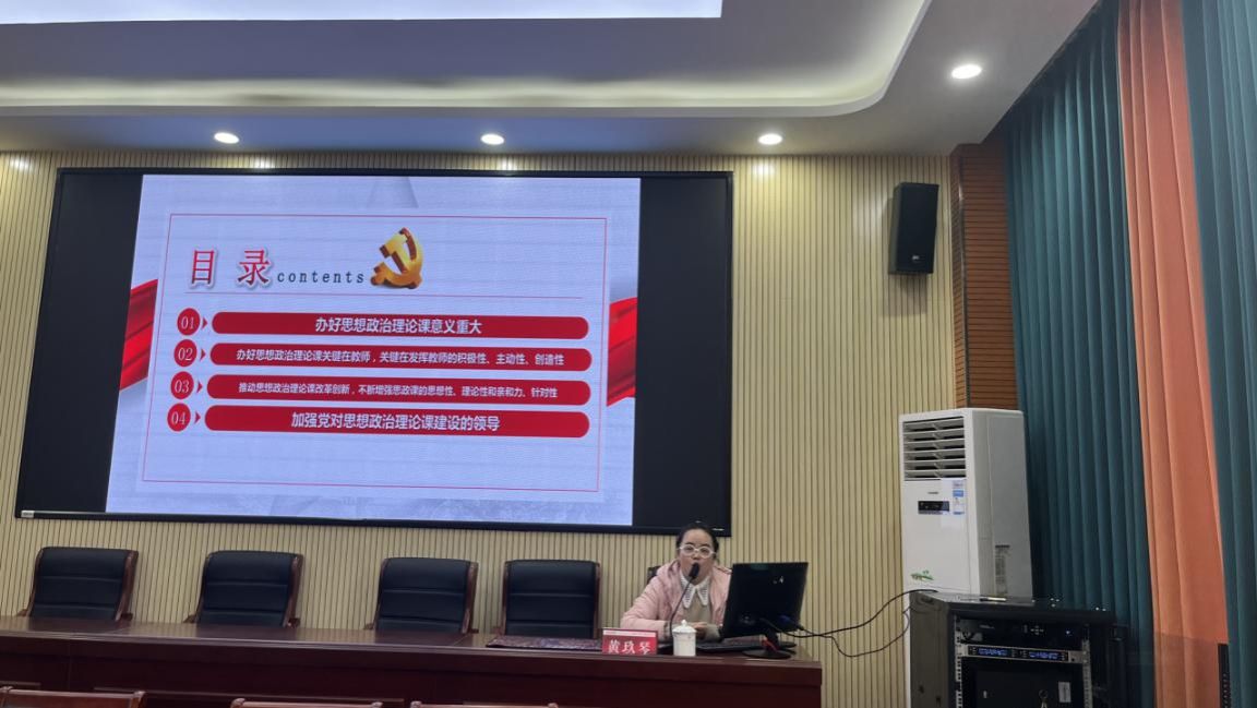 讲座上,黄玖琴教授首先讲解了办好思想政治理论课的重大意义。办好思政课最根本的是要全面贯彻党的教育方针,解决好培养什么人、怎样培养人、为谁培养人这个根本问题。他说:推动思想政治理论课改革创新,必须做到以下几个统一:一是坚持政治性和学理性相统一。二是坚持价值性和知识性相统一。三是坚持建设性和批判性相统一。四是坚持理论性和实践性相统一。五是坚持统一性和多样性相统一。六是坚持主导性和主体性相统一。七是坚持灌输性和启发性相统一;八是坚持显性教育和隐性教育相统一。