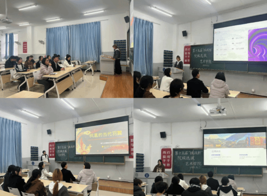 经过前期广泛动员与项目征集,遴选多支优质参赛队伍参与本次角逐,项目涵盖非遗活化、文旅融合、乡村振兴等多个前沿领域。从聚焦铜仁声景文旅推广项目,到深挖民族文化的“凤凰的当代羽翼——基于AI的畲族女性符号当代服装设计研究”,从助力非遗活态传承的传统工艺创新,到赋能城市文旅宣传的数字创意方案,各团队项目既立足艺术学科专业特色,又紧扣地方发展与时代需求,充分展现了艺术学院学子敢闯会创、勇于探索的创新精神与专业素养。 本次院级选拔赛为学生搭建了展示创新成果、交流实践经验的平台。