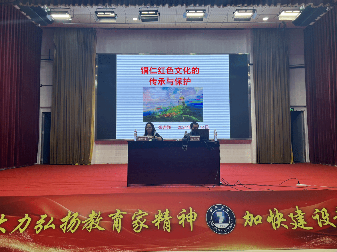 10月14日晚,我院在人文生态馆举办题为《铜仁红色文化的传承与保护》的专题学术讲座,邀请原铜仁市文体广电旅游局副局长、铜仁市文物局局长张吉翔主讲。讲座由艺术学院党委副书记麻晔斐主持,2023、2024级260余名学生及部分教师参加。