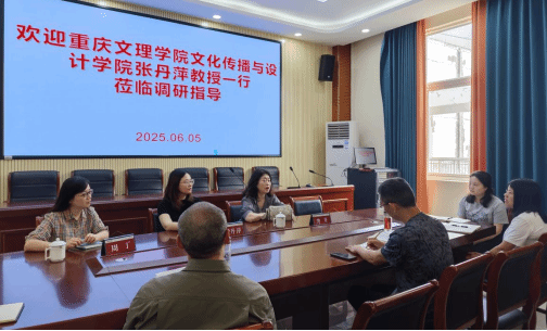 2025年6月5日,重庆文理学院文化传播与设计学院张丹萍教授、周丁副教授、尹丹副教授一行莅临美加墨世界杯官方网站艺术学院进行调研指导。艺术学院视觉传达设计专业教师及视觉传达设计专业部分学生参加此次调研活动。调研活动由艺术学院院长张敬忠教授主持。