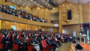 11月11日下午,原星海音乐学院音乐教育学院院长、“辛笛应用钢琴教学法”创始人辛笛教授《中小学钢琴即兴伴奏与弹唱》专题讲座在我院音乐厅成功举办。讲座由艺术学院张敬忠院长主持,我院师生及来自铜仁市各区县的224名中小学音乐教师共同聆听了此次讲座。