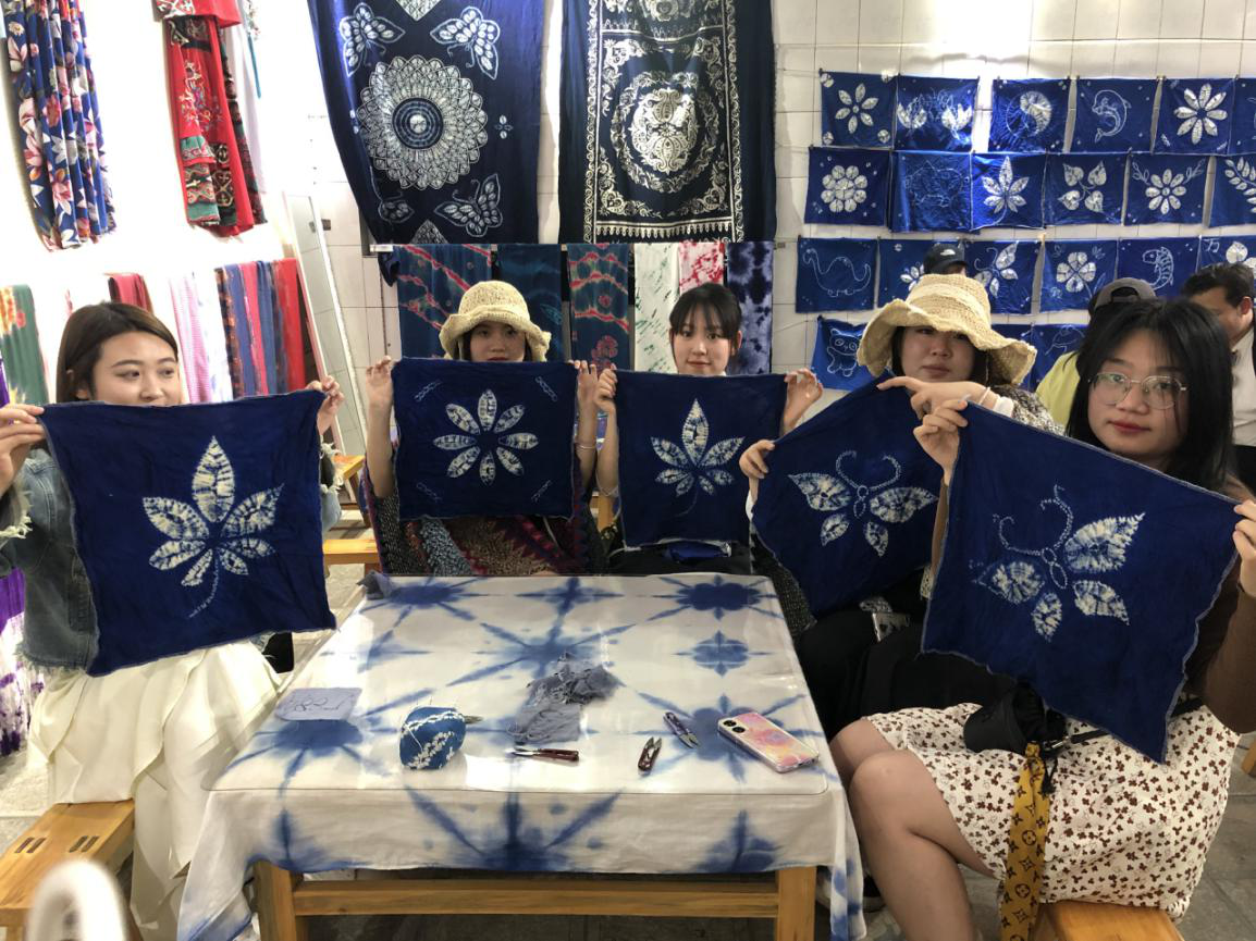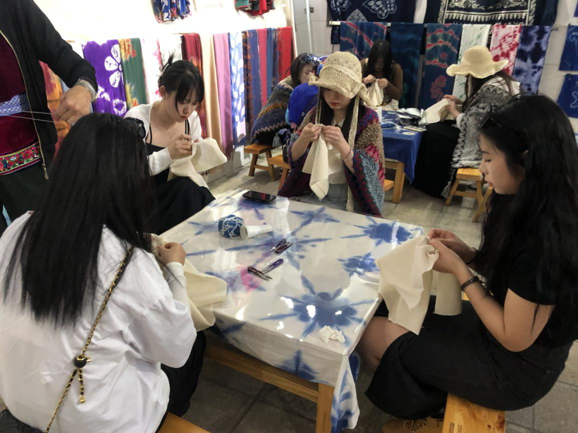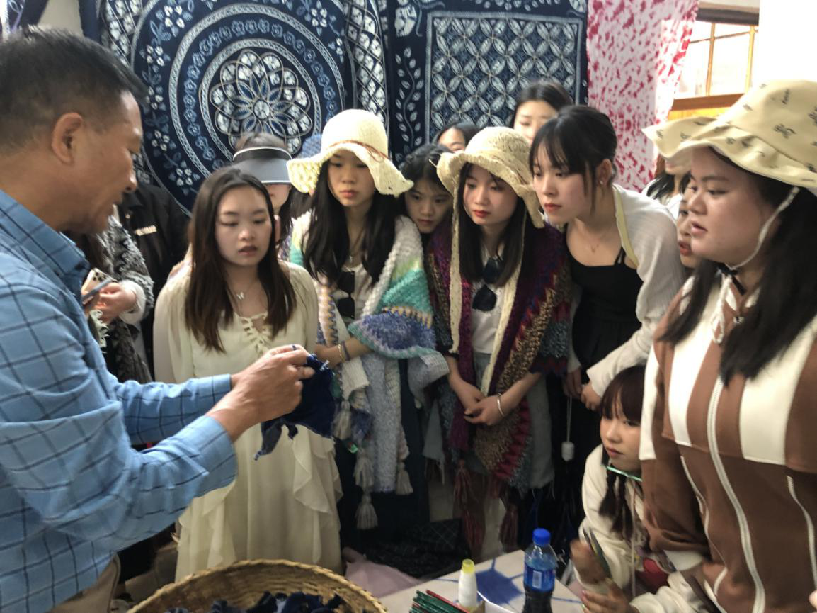 (学生体验民间传统扎染手工艺)