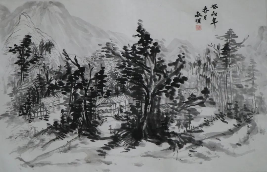 写生之旅很快到来,大家兴致勃勃,期待着这次外出。或许是太久未画,亦是基础掌握不牢,才导致来到现场不敢下笔。全然忘记需要注意的问题,整体的构图,树木、山体的位置,墨色的浓淡干湿,整体的气韵生动。总害怕画错,内心没有底气。而底气的来源于平时的临摹积累,都远远不够。就算之前掌握的一些笔墨技法,也没有灵活运用,脑子没有转起来。与此同时,心情也是十分低落,没有信心。但是,在这短短的七天内,不仅看见了山林和树木,感受到了大自然的美好,而且还学到很多东西,能够区分山水画和风景画;对房屋结构有了一些了解;选取不同的景物的运用;避免画面的散乱;从一种游走和俯瞰的视角来观看。让我不由得感叹写生很难,考虑的因素很多。