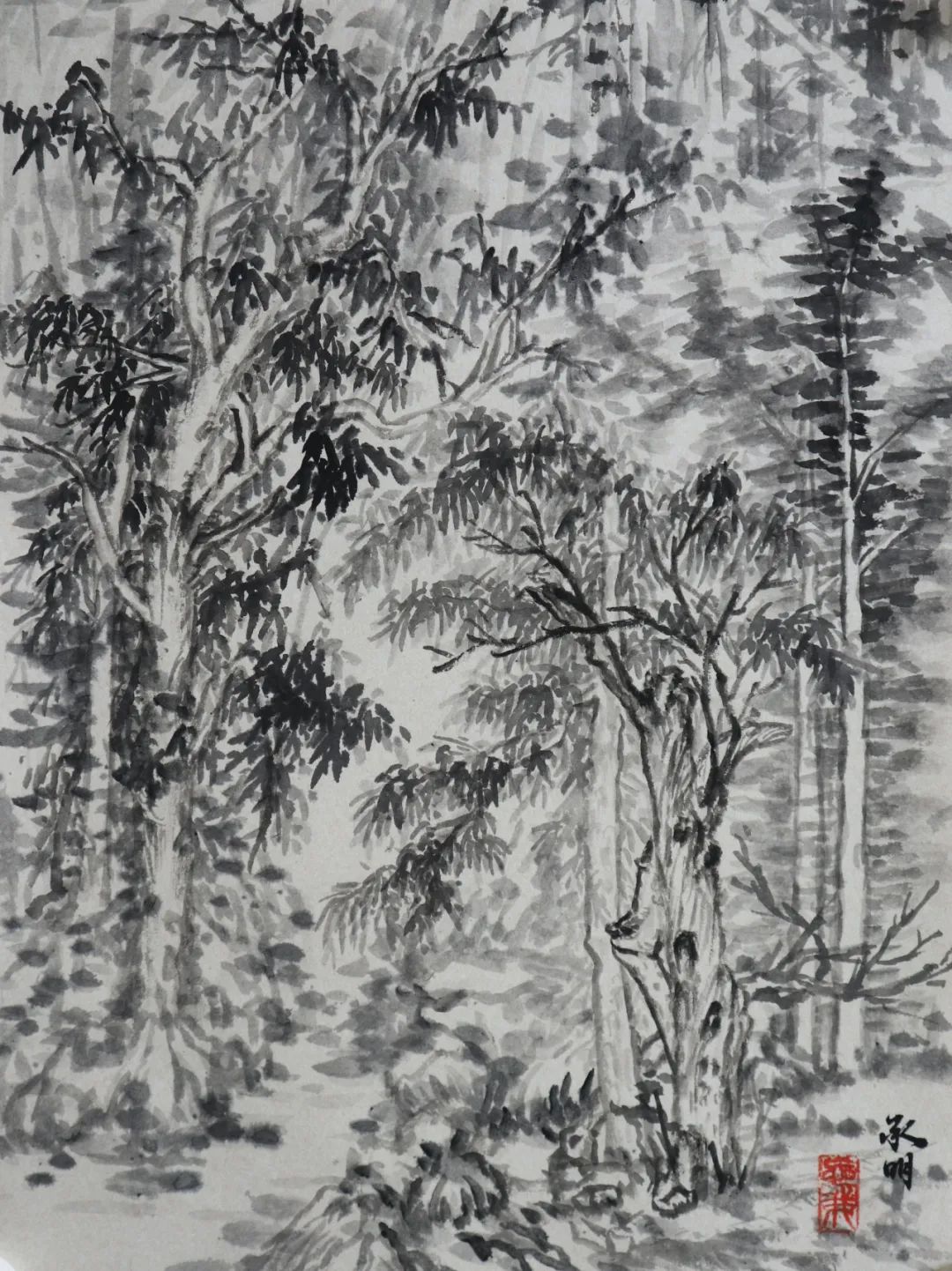 通过这次写生我的收获就是理解了笔墨要用“活”,以前只知道墨是浓淡干湿丰富就行,画面“活”不“活”就看当时运气了。还有就是看了肖老师的写生时的用笔,自己也尝试把墨用饱满,最后画面出来的效果肖老师说有泼墨的感觉,然后去了解了下泼墨这个绘画技法,很好又学到一个绘画技法。