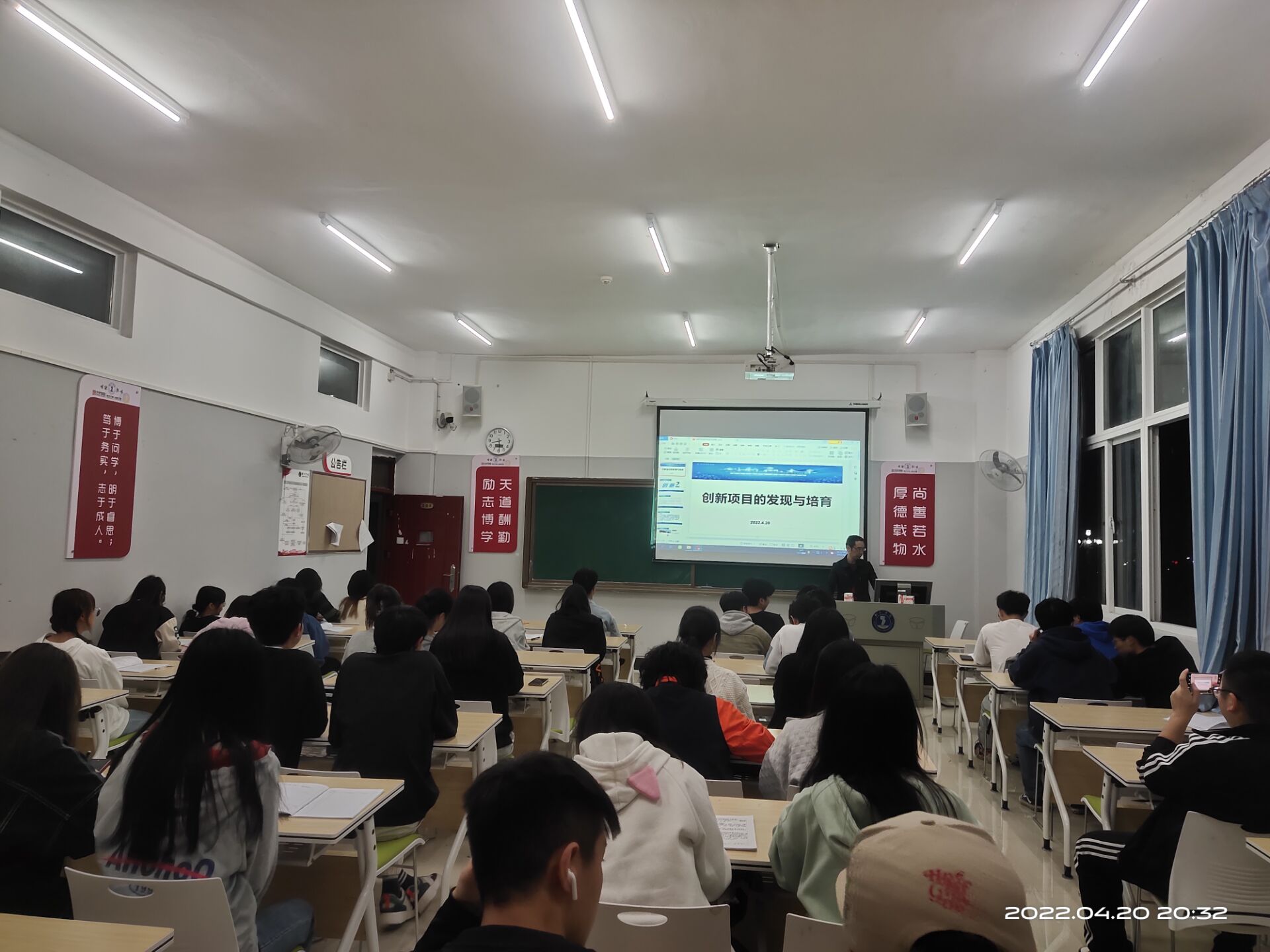 2022年4月20日晚19:30,我院滕明勇副教授在203教室为21级视觉传达专业的同学们奉献了一场主题讲座:大学生艺术设计竞赛的选题方法与技巧。