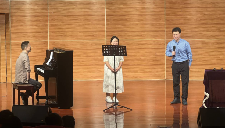 上午9点,马关辉教授的讲座在音乐楼音乐厅准时开始。马教授首先生动有趣、开诚布公地向现场师生分享了自己的演唱生涯和成长历程,然后从专业演唱的角度,结合自己的体验和研究,对不同类型歌曲的演唱技巧、情感赋予等,都给予生动说明,总结了一般规律。而后,现场抽取四名同学进行演唱,并以之为案例,进行歌唱艺术的解析和指导,然后演唱了自己的代表性歌曲进行示范。最后,就音乐学,特别是演唱艺术的学术研究问题,谈了自己的看法和研究经验、研究方法,鼓励现场师生树立学术研究的思维,以研究推动自己在演唱艺术上不断突破自我。马教授的讲座,持续了三个小时,但现场师生都觉得倏忽而过,忘我忘物,既享受了马关辉教授演唱艺术的独特魅力,又从中感悟了演唱艺术的独特规律。讲座结束,参与讲座的全体教师和部分学生与马关辉教授一行亲切合影留念。