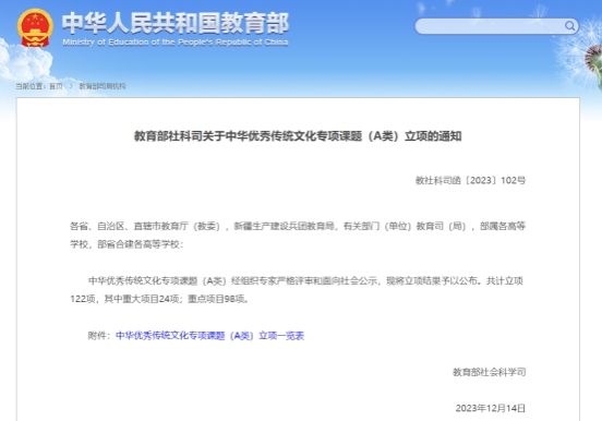 (立项的通知(教育部官网截图))