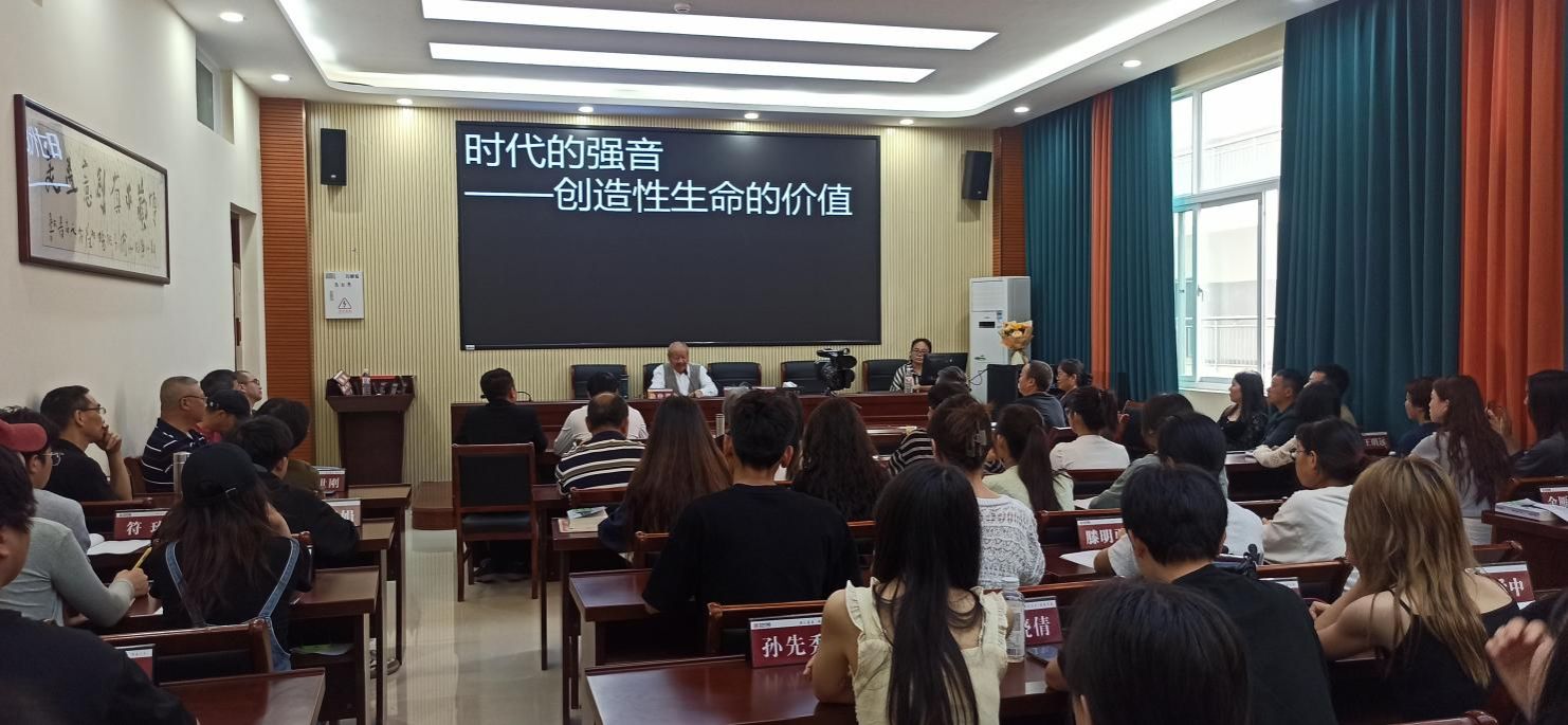 在讲座开始前,徐仲偶教授要求全体听众静默五分,然后从心灵之于学习、成长、家庭、工作、社会生活、艺术创作的原点地位阐述,经用心则有爱,爱而后能深彻感受万物、感受生命,有了深彻感受的基础,方能对万事万物、生命律动有准确的理性认知,人生就打开了美学意义的上升通道。在此基础上,以仁义礼智信修身养性,将之外化为温良恭俭让的人生方式,如此真善美便能有机统一,创造性的生命由此诞生,无论是艺术创作,还是其他工作,便都能有所创造。