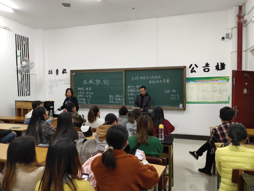 首先17美本班班长田波为我们解说了弘扬社会主义核心价值观的重要意义,接着学生科科长龙黎老师老师为我们讲解了大学生日常行为规范和艺术学院对于学风建设的要求及标准,强调要学习社会主义核心价值观,争做文明人。潘学平老师和杨辉老师则代表17、16届班主任发言,对我们提出了相应的要求并倡导我们把社会主义核心价值观熟记心头。