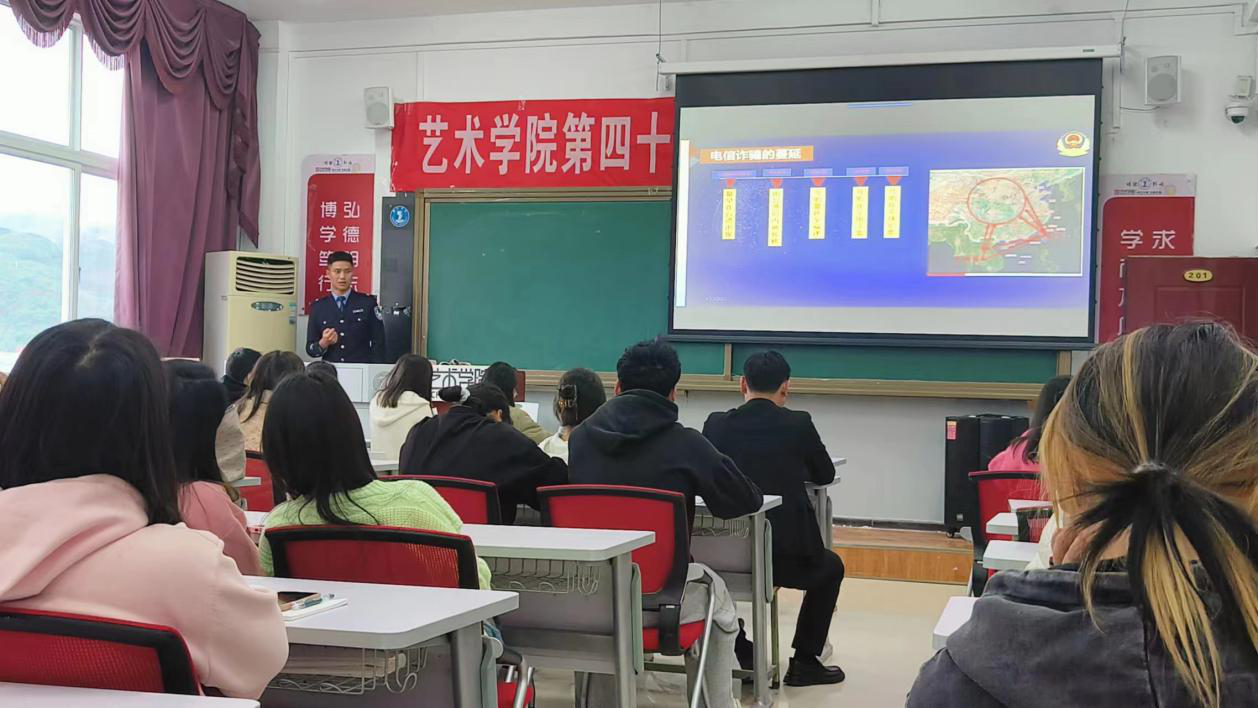 4月23日下午,市公安局反诈中心吴枝科警官在美术楼201教室为我院学生开展防范电信网络诈骗知识讲座,全院班干部到场聆听。