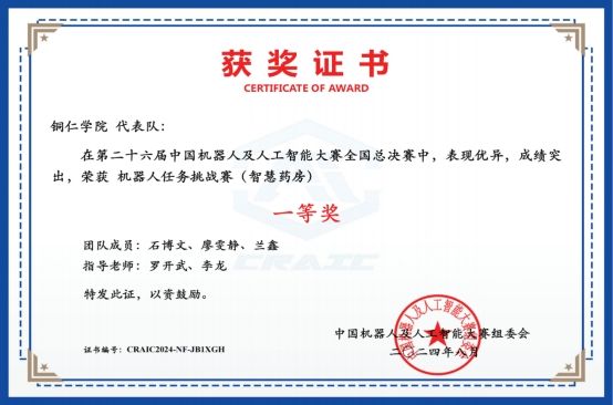 第二十六届中国机器人及人工智能大赛国赛一等奖