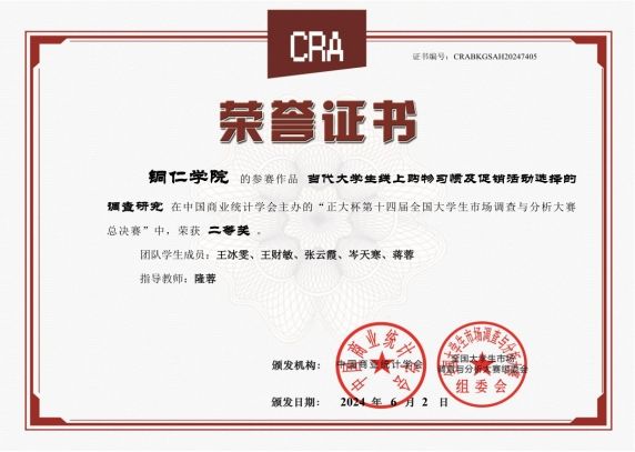 第十四届“正大杯”全国大学生市场调查与分析大赛国赛二等奖