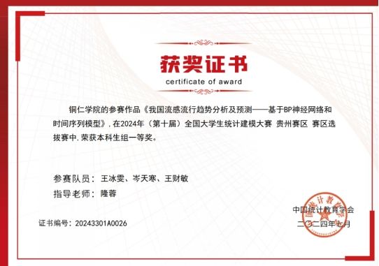 第十届全国大学生统计建模大赛省赛一等奖