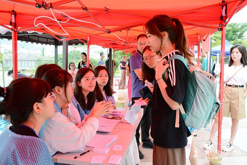 迎新活动主要集中在南大门和明德湖广场,迎新现场井然有序。校门口迎新展牌上“欢迎2023级新同学”的醒目标语,迎新现场五彩缤纷的迎新帐篷和身着各色服装的迎新服务队和志愿者,构成了一道亮丽的风景线,营造了青春向上的迎新氛围,喜迎2023级新生的到来。