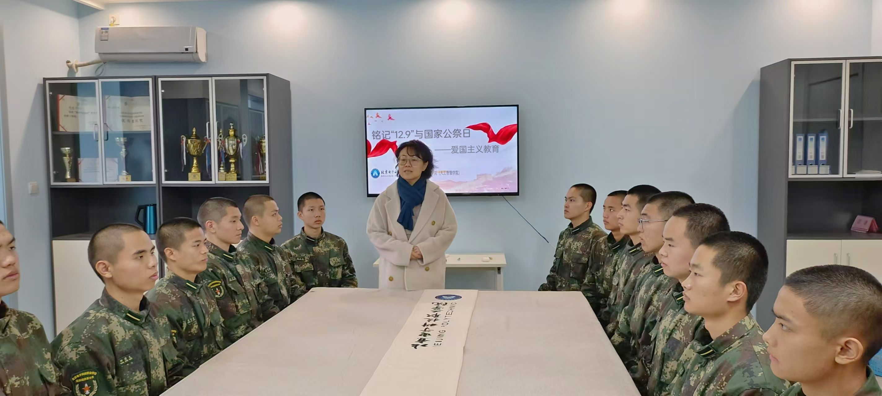 为深入弘扬爱国主义精神,铭记历史、缅怀先烈,集成电路学院(人工智能学院)将“12.9”运动纪念日与国家公祭日的教育意义相融合,对军士生开展了爱国主题教育活动,辅导员武淼主持开展。