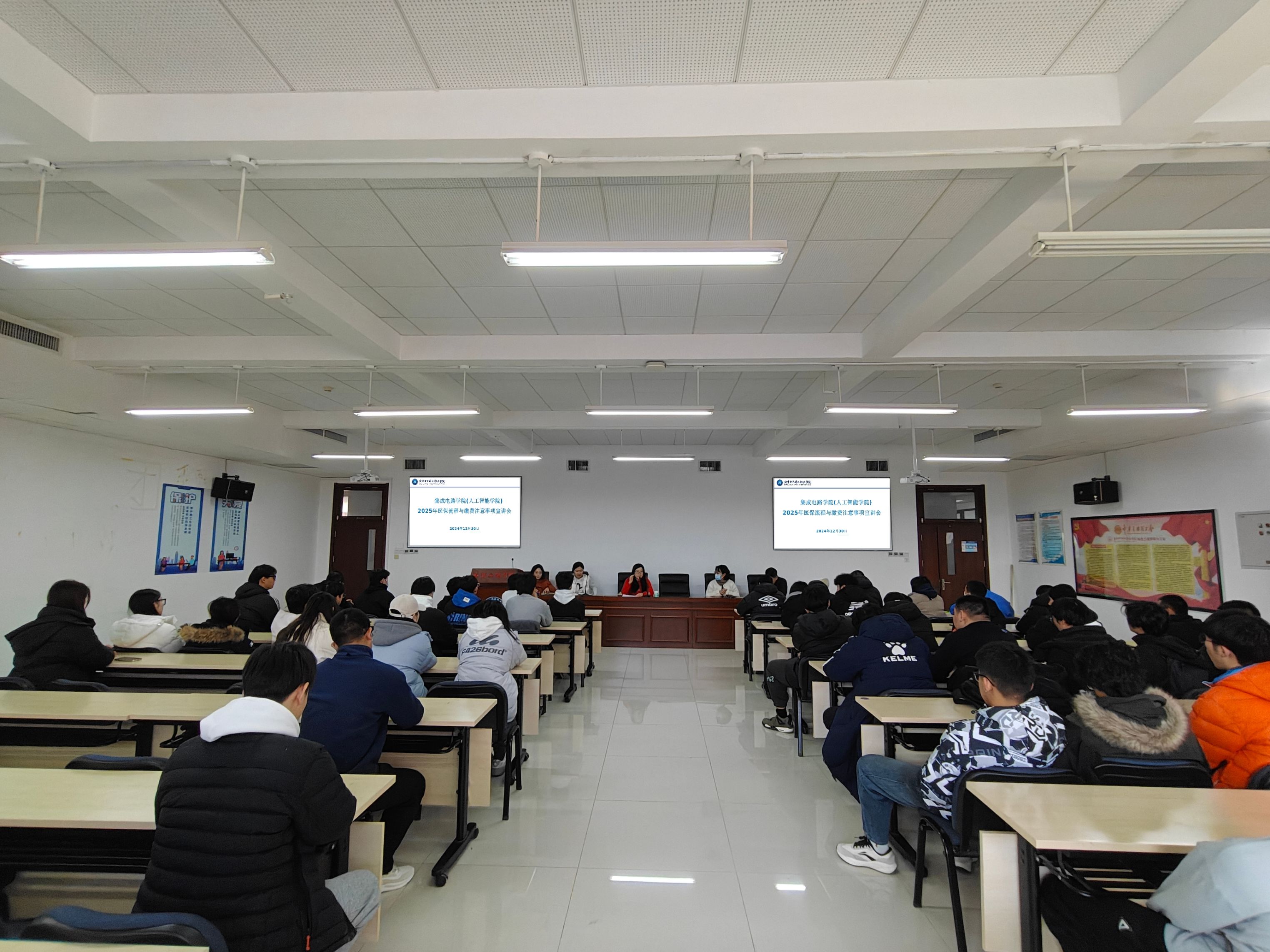 在讲解医保缴费流程时,宋媛媛特别强调了缴费的时间节点、缴费方式以及缴费后需要确认的事项,确保每位学生在规定时间内顺利完成缴费,避免因操作不当而影响医保待遇的享受。同时,她还针对往年缴费过程中出现的常见问题,给出了详细的解决方案和建议,避免学生在缴费过程中遇到的困惑和麻烦。